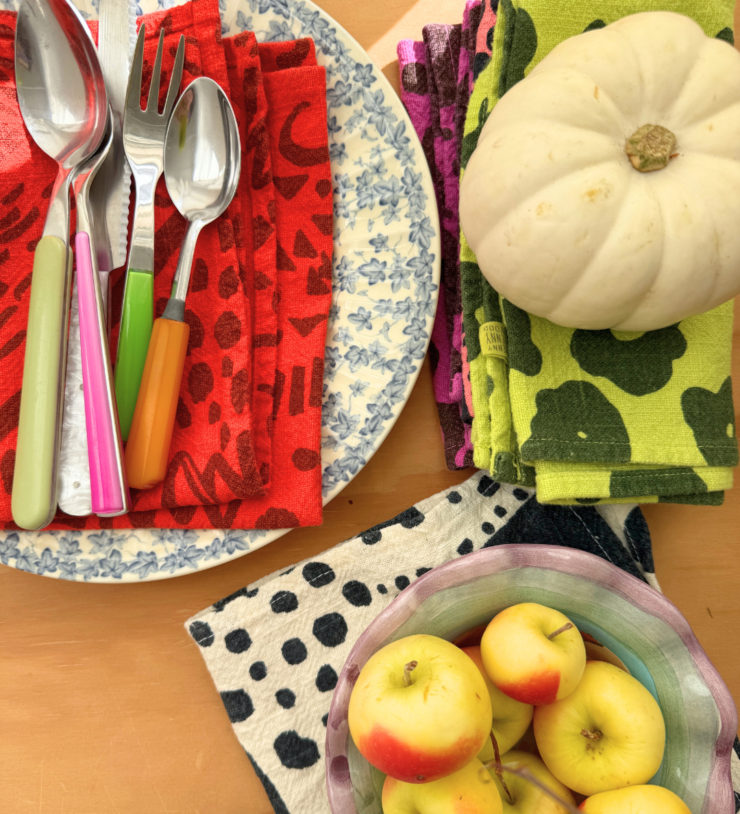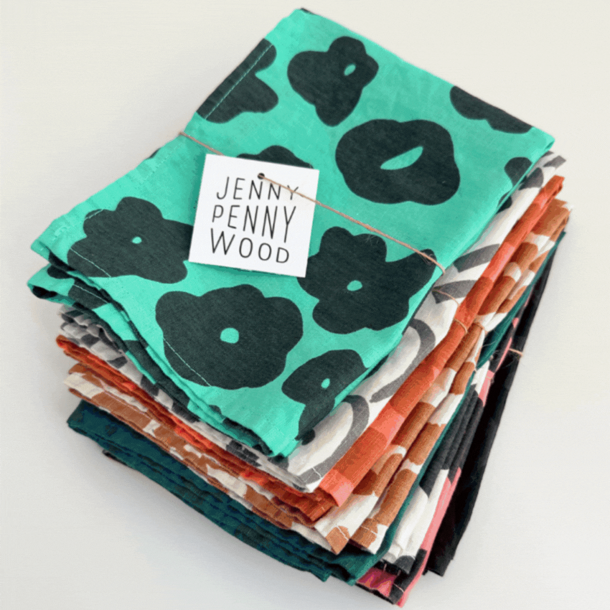 Each pattern is hand-drawn or painted by Jen Garrido in the studio and printed on natural, thoughtfully sourced textiles.