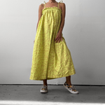 Easy on, easy off, easy everything. The Jenny Pennywood Nap Dress has soft and stretchy smocking across the top for shape without the uncomfy structure, a draped midi-length skirt that moves with you, the straps are adjustable so you can tie it where you want to tie it. Comfort first, style always. Dress it up or down, it’s the timeless go-to.
