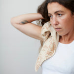 The Jenny Pennywood Silk Gauze Bandana is made from lightweight, breathable 100% Silk Noil Gauze in a variety of signature patterns and rich over-dyed colors. Handcrafted in small batches with sustainable practices, each bandana has subtle variations in texture and shade that make it truly one of a kind. Flare for more than just the neck, wear it as a headband, neck scarf, a stylish accent to your bag, or to add a pop of color anywhere else you find the opportunity.