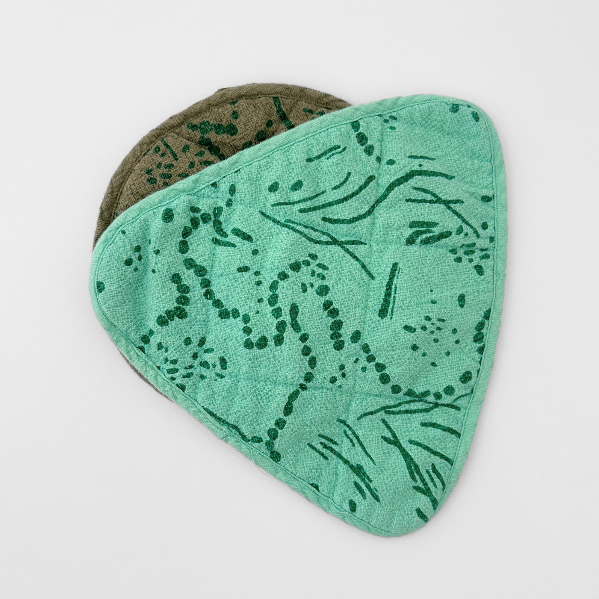 Love that I use these as table mats for hot pots and also pot holders. The fabric and pattern is beautiful.