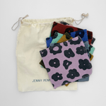 Jenny Pennywood patterns are rooted in Jen Garrido’s fine art practice, shaped by years of exploring and working with color, rhythm, and form. These are not digital-first designs, each one begins by hand as a painting or drawing in the studio. The artwork is then translated into repeatable forms that become the visual foundation for textiles, accessories, and patterned basics. Every pattern is uniquely playful and down to co-mingle.