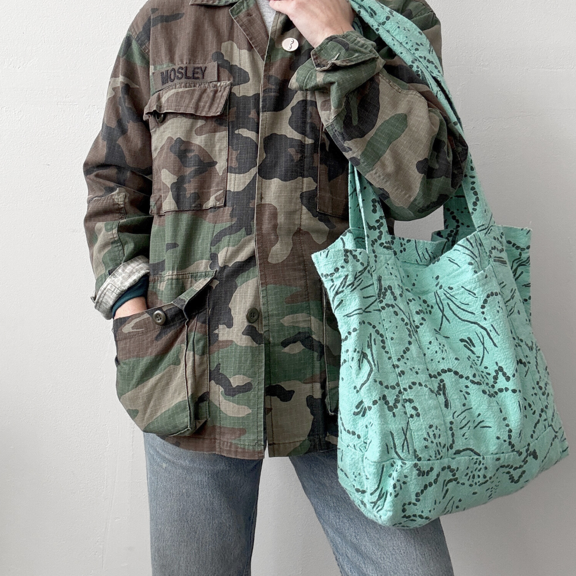 Spot clean, wash on cold, tumble, or hang dry. Like every great vintage textile, screen-printed colors, and over-dyed items may fade with repeated washing, growing softer (more "lived in" & loved) and, in our opinion, better with time.