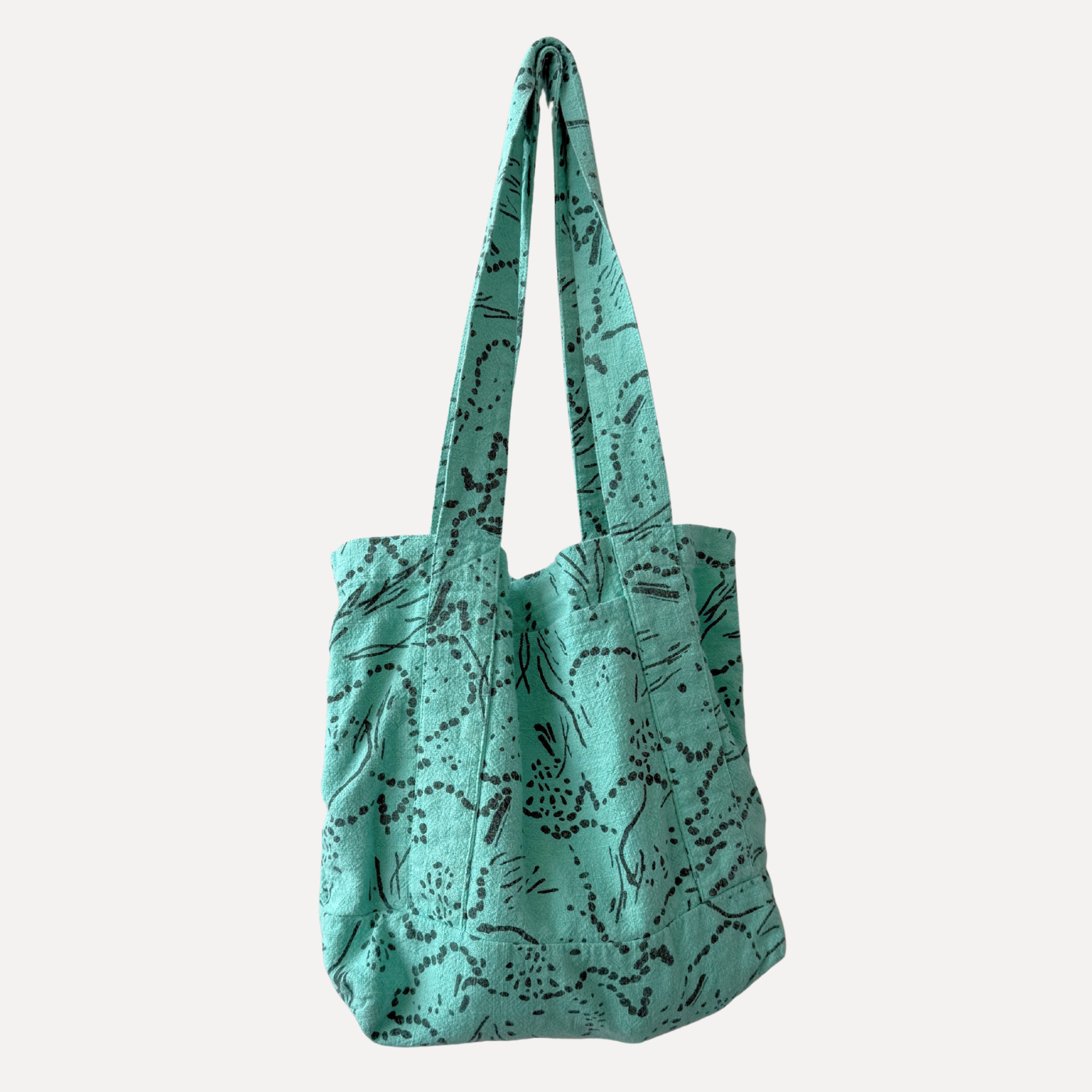Every Jenny Pennywood textile is screen printed with water-based inks and sewn locally in California. We use a small-batch over-dyeing process, where each finished piece is dyed after it's sewn, giving it our signature “born vintage” feel. This results in a soft, lived-in vibe from day one, with subtle variations in color and size that make each item uniquely its own..